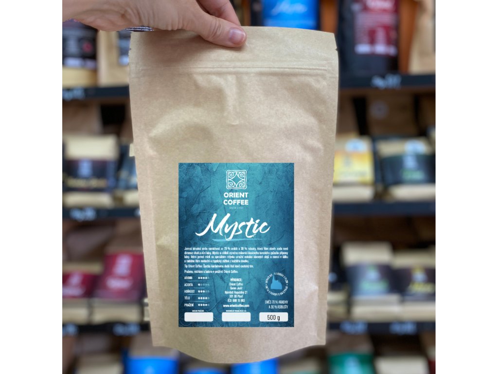 Jemná lahodná směs namíchaná ze 70 % arabik a 30 % robusty, která Vám otevře zcela nové dimenze chutí a vůní kávy. Mystic si oblíbí zejména milovníci klasického tureckého způsobu přípravy kávy v džezvě. Velmi jemné mletí na speciálním mlýnku umožní extrakci kávových olejů a esencí v šálku a nabídne Vám nevšední a mystický zážitek z každého doušku.